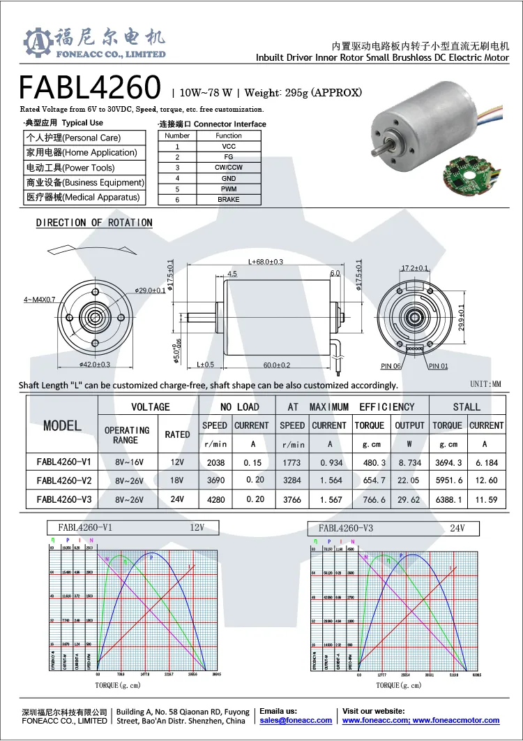 The whole inner rotor brushless dc motor with a built-in driver family is as below: