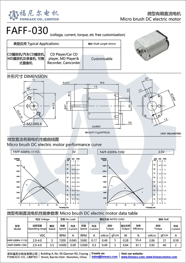 The datasheet of FF-030 micro brush dc electric motor is as below: